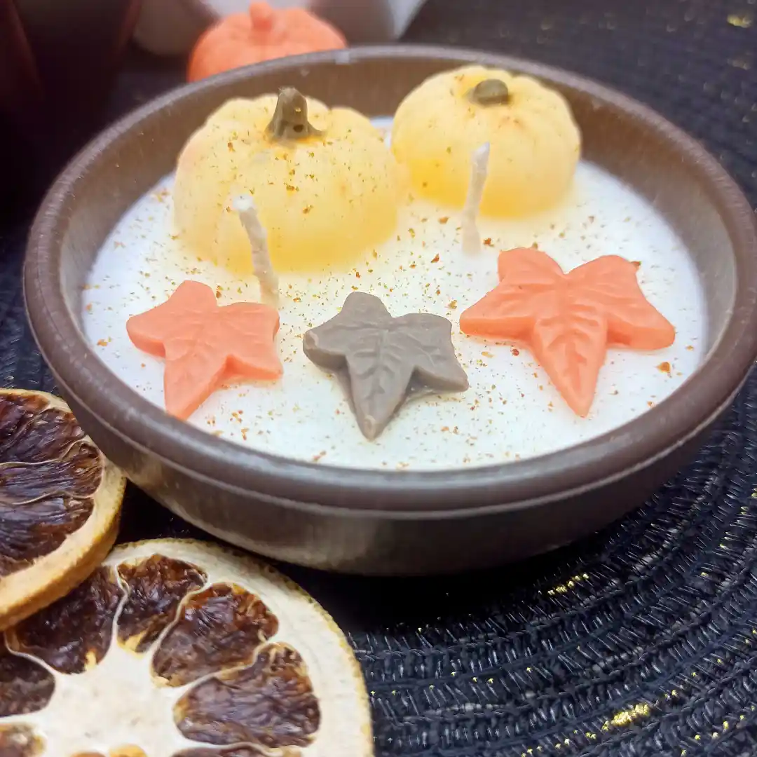 Sonbahar Serisi Balkabağı ve Yapraklar Dekoratif Hediye Mum